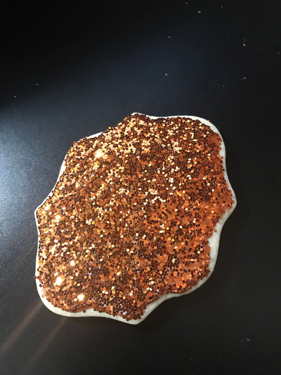 Does this look pretty to you? It does to me too! But full disclosure, it is a scrumptious cookie, topped with glue and smothered in glitter. It might not kill you but I'm not serving it to you to eat.